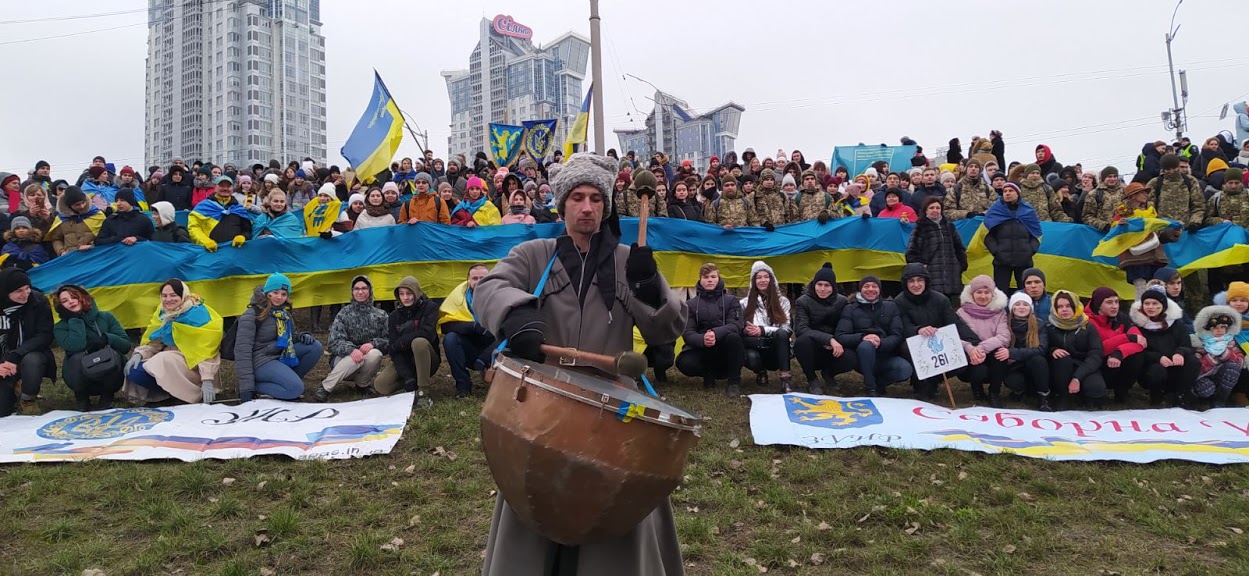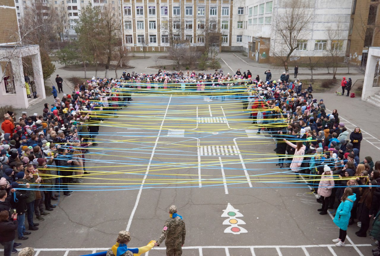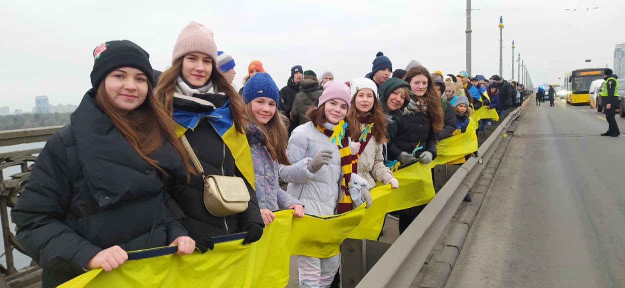 Учнівська молодь закладів освіти № 207, № 292 та економіко-правового ліцею взяли участь у акції «Живий ланцюг соборності» (міст ім. Патона).