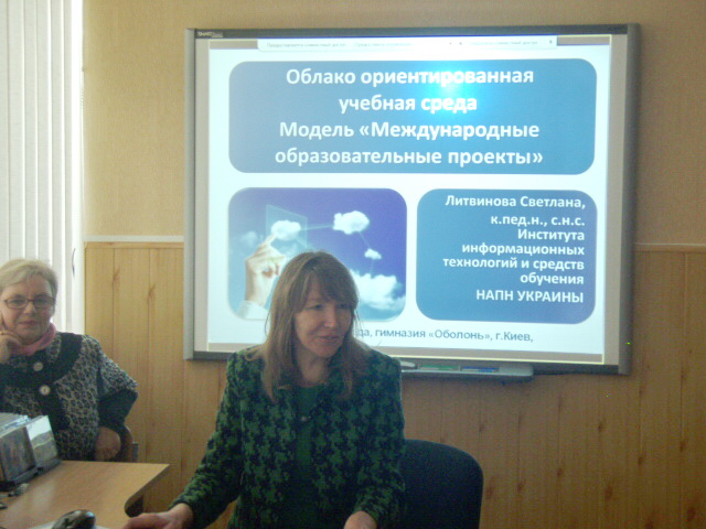 – Зауважте, це не Skype, а Lync – програма конференц-зв’язку для дистанційного навчання, – наголошує старший науковий співробітник Інституту інформаційних технологій і засобів навчання НАПН України Світлана Литвинова. «Делегати» від шкіл, гімназій та навіть університетів, що зібралися у столичній гімназії «Оболонь» (з 2012-го – асоційована школа ЮНЕСКО, учасник проекту«Навчання для майбутнього»), розуміють: шлях до «хмари» буде довгим, але цікавим.