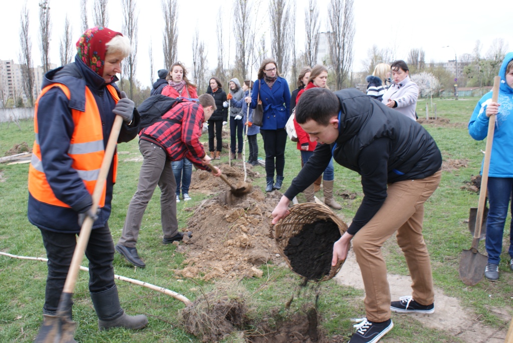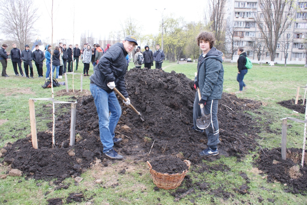 Допомогти нам визвалось комунальне об’єднання «Київзеелнбуд», яке радо допоміг нам з саджанцями дерев та всіма необхідними обладнаннями. У висадці взяли участь близько 200 учнів шкіл Святошинського району, а також усі небайдужі його жителі.
