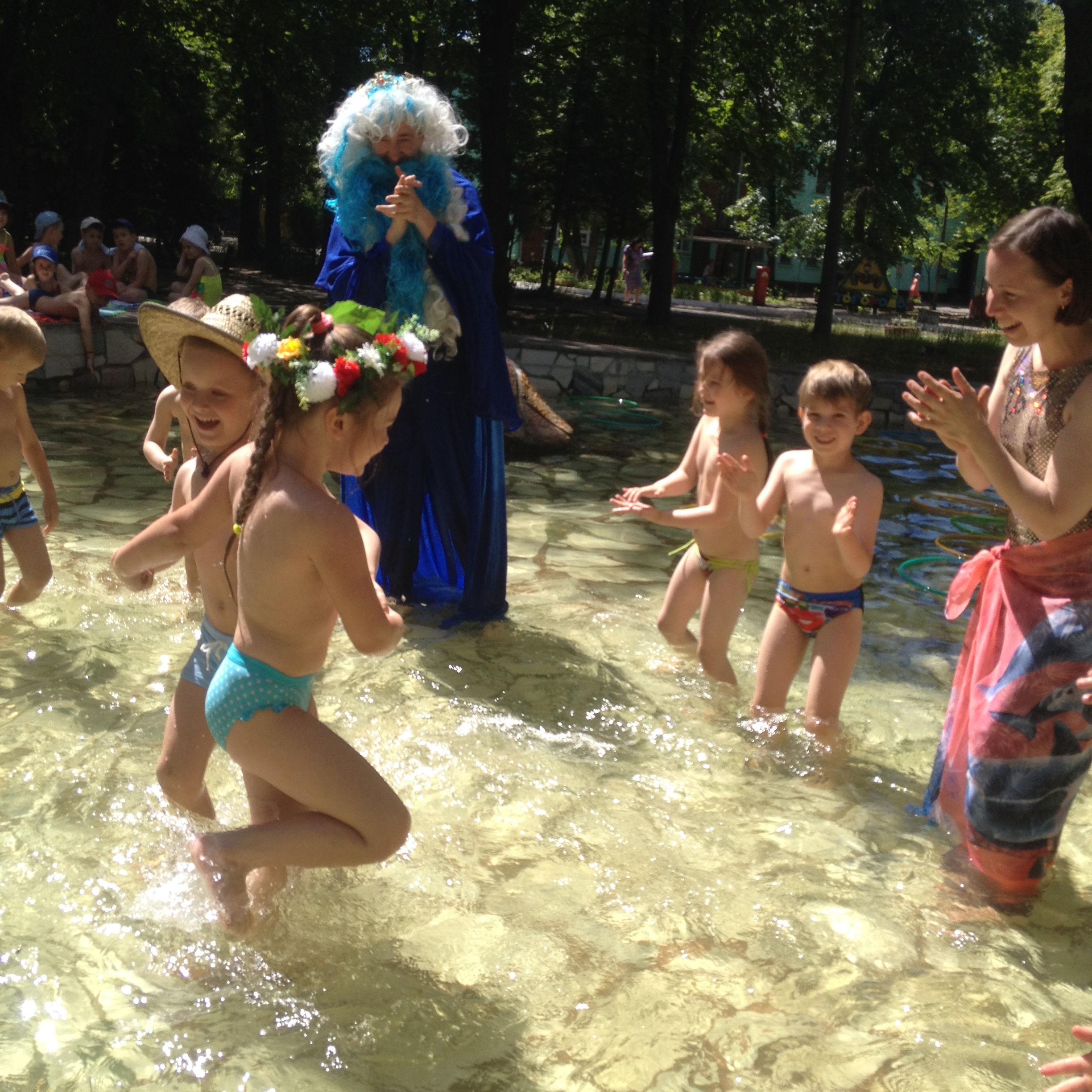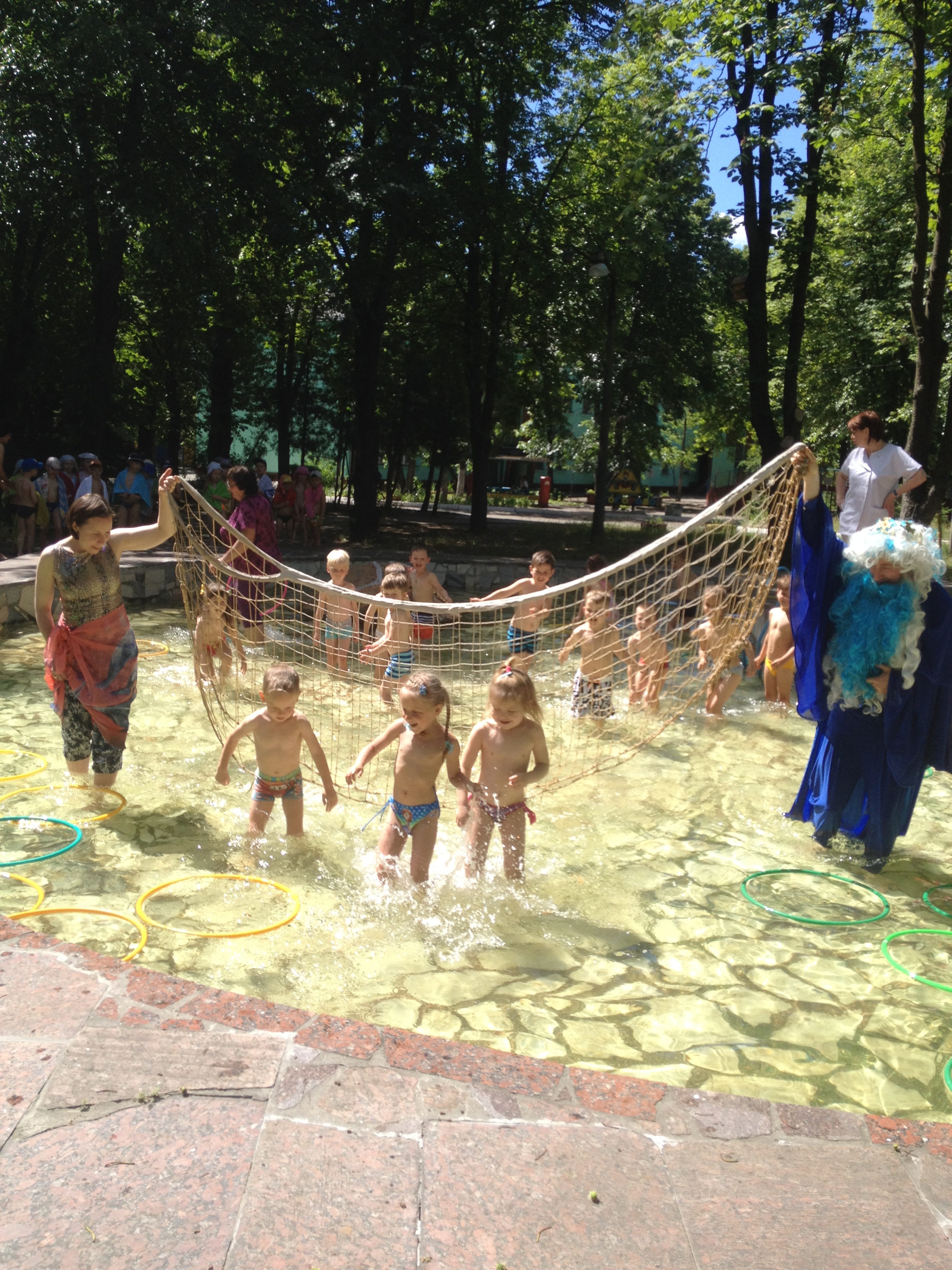 І брилик і віночок, який діти ловили у воді і надягали, обсипали дітей прохолодними краплинками води, а під час веселого таночку малюки відчували радість та захоплення від можливості потанцювати і побризкатись у воді.