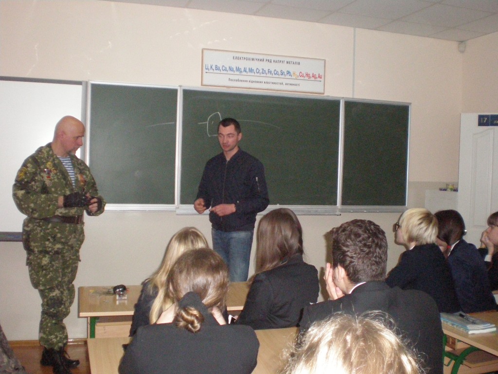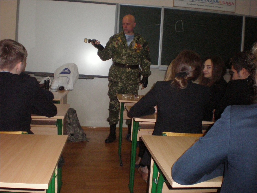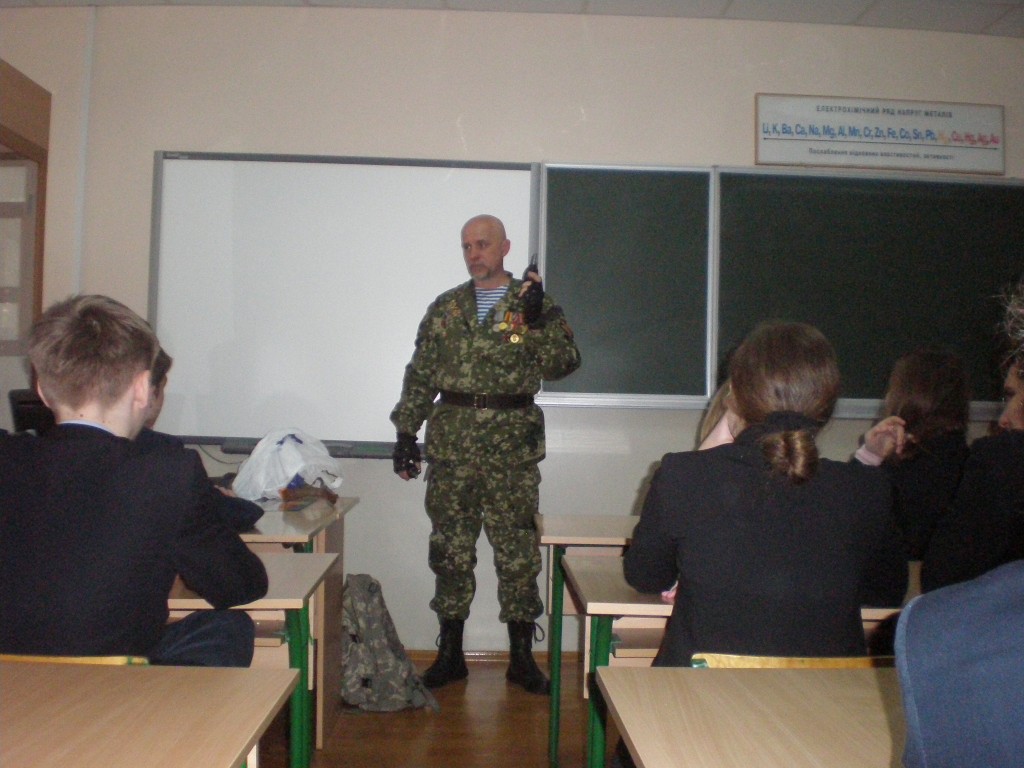 Під час зустрічі Олексій Петрович розповів учням про нелегкі бойові будні, показав військові трофеї. Гімназисти задавали безліч питань і про умови перебування в місцях бойових дій, і про те, коли закінчиться війна, про обереги, які носять солдати.