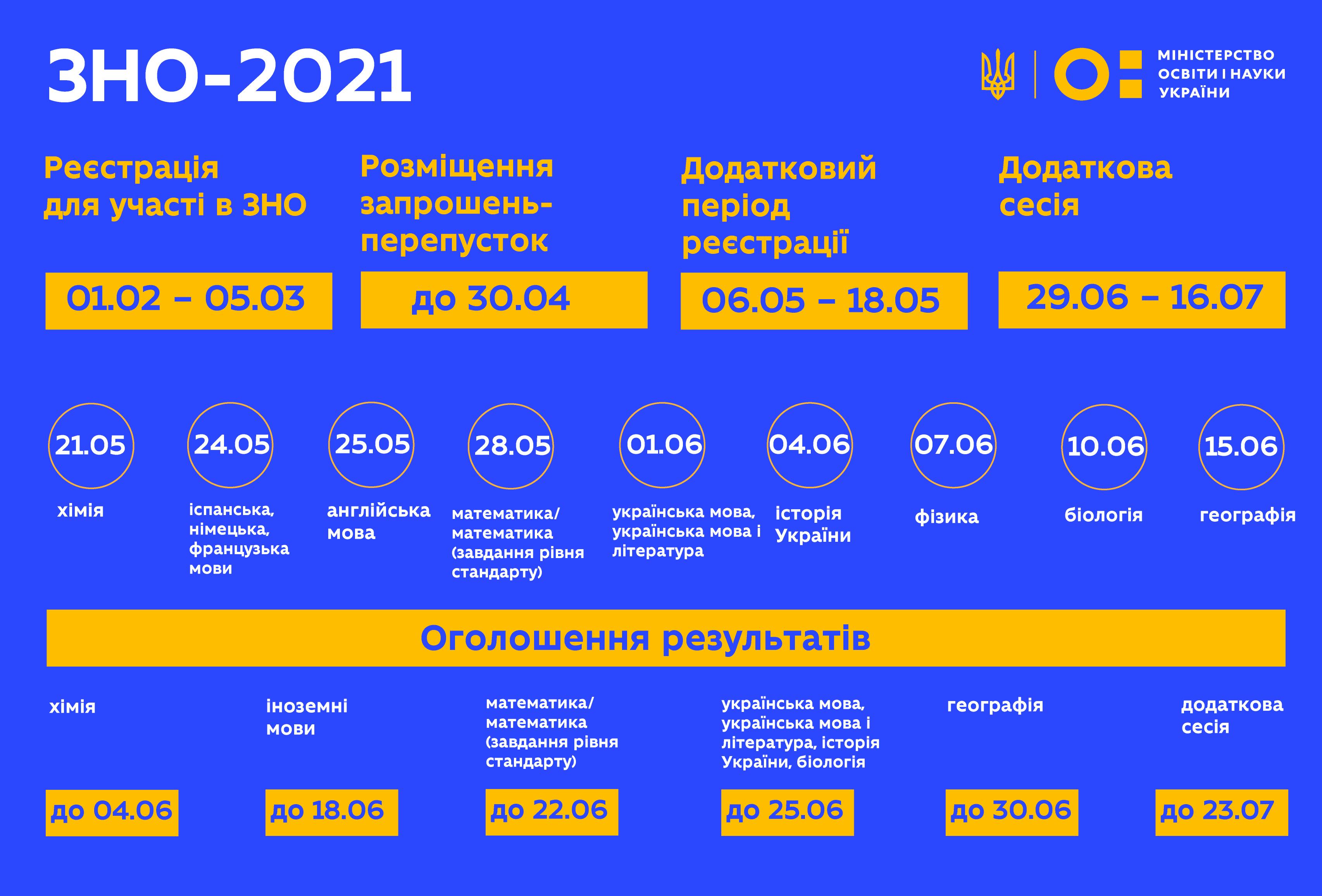 Додатковий період реєстрації окремих категорій осіб триватиме з 6 до 18 травня включно. Додаткова сесія ЗНО відбудеться з 29 червня до 16 липня.