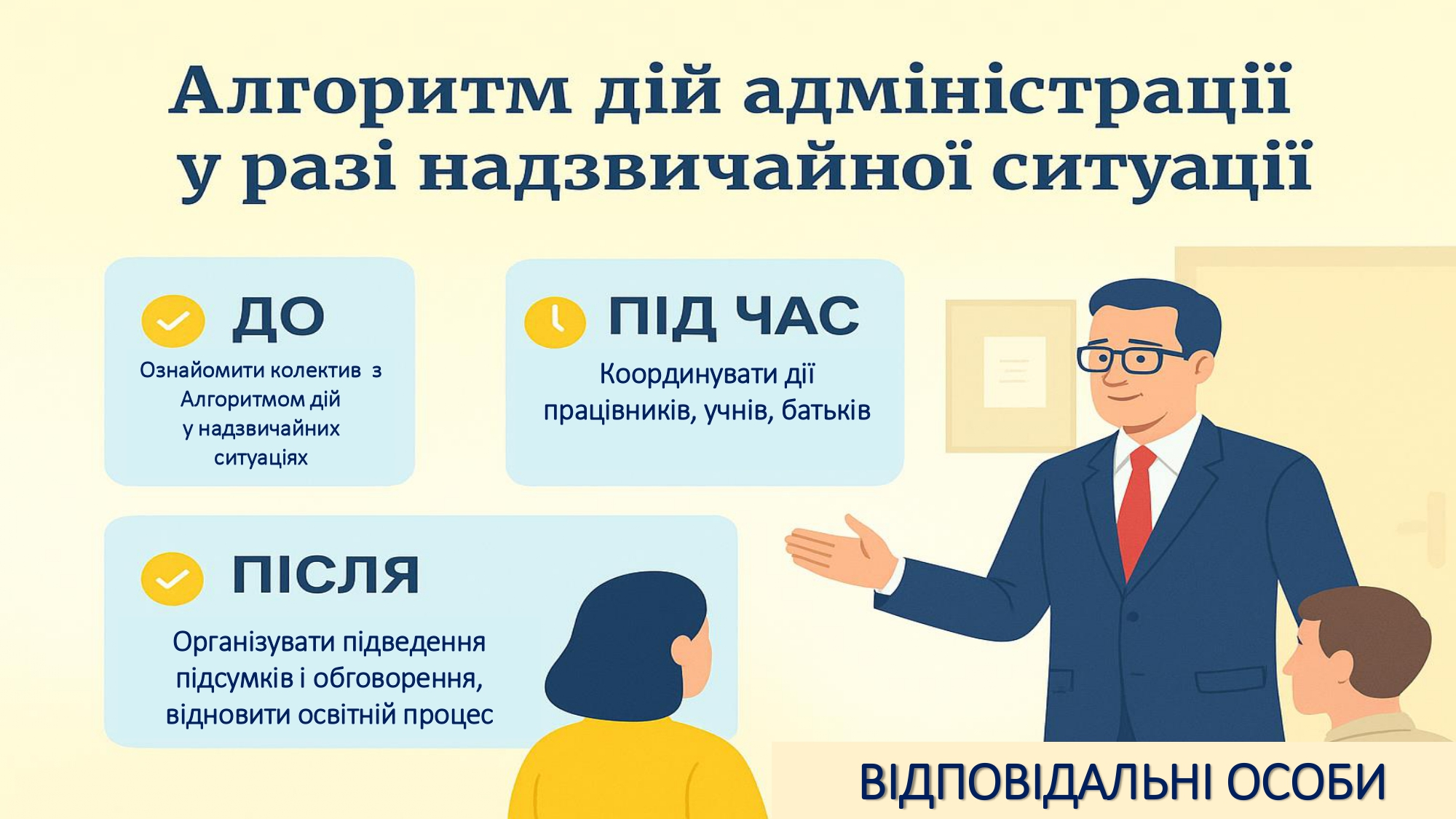 Для прикладу публікуємо алгоритм дій, відпрацьований з урахуванням потреб закладу директоркою Ліцею № 34 Подільського району Алевтиною Багінською.