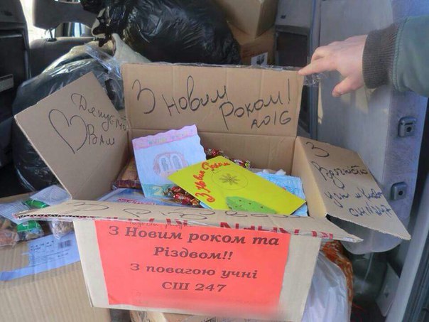 Учні спеціалізованої школи № 247 Деснянського району міста Києва привітали бійців АТО 56 бригади та 93 танкової бригади з новорічними та різдвяними святами.