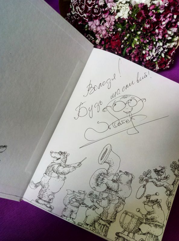 Сьогодні український актор, поет-пісняр, телеведучий, сценарист, режисер масових заходів Петро Мага презентував та подарував Будинку вчителя дитячу книгу-оперу за мотивами української народної казки «Жив собі пес».