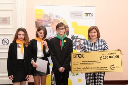 П'ять навчальних закладів, які розробили т захистили найкращі проекти зі зменшення споживання електроенергії, підвищення енергоефективності та/або покращення теплового комфорту шкільних приміщень, і провели найбільш активну інформаційну компанію отримали від компанії ДТЕК по 130 тис. грн. на втілення своїх проектів.